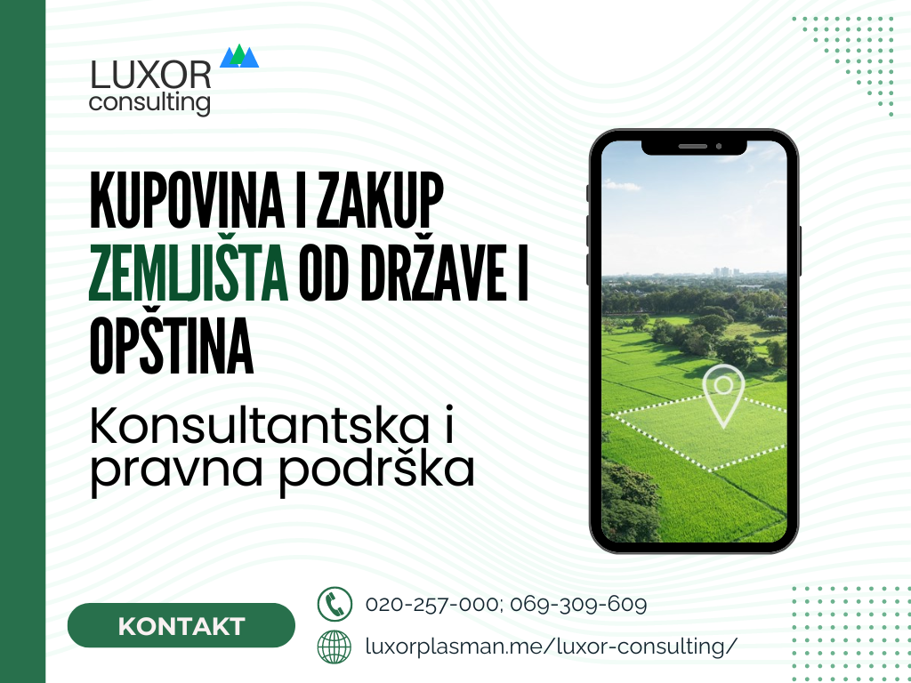 Treba Vam podrška za kupovinu ili zakup zemljišta od države ili opštine? Mi ćemo Vam pružiti profesionalnu i sveobuhvatnu uslugu koja podrazumijeva: