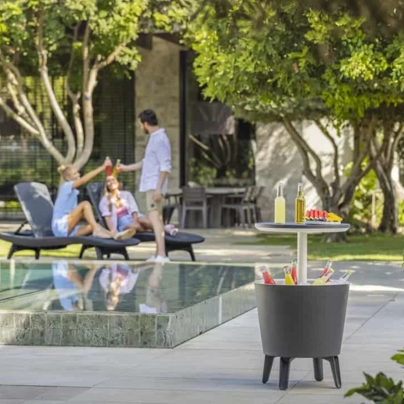 Cool Bar – Višenamjenski baštenski bar koji se u rasklopljenom obliku koristi kao mobilni sto, dok u sklopljenom obliku postaje klasični bar sa posudom za hlađenje pića. Elegantni dizajn i funkcionalnost čine ga idealnim rješenjem za društvena i porodična okupljanja u vrtu ili na terasi.