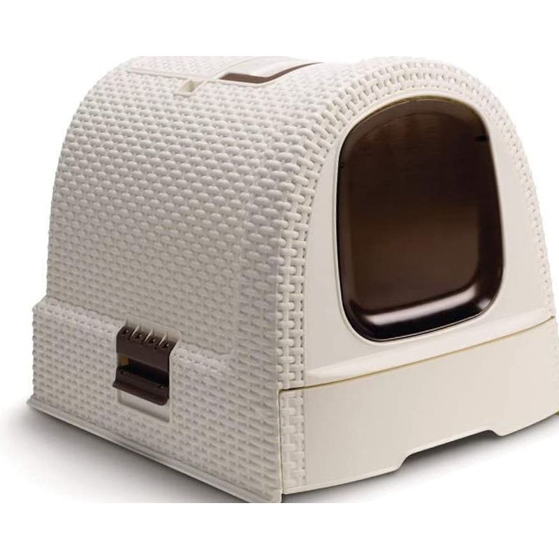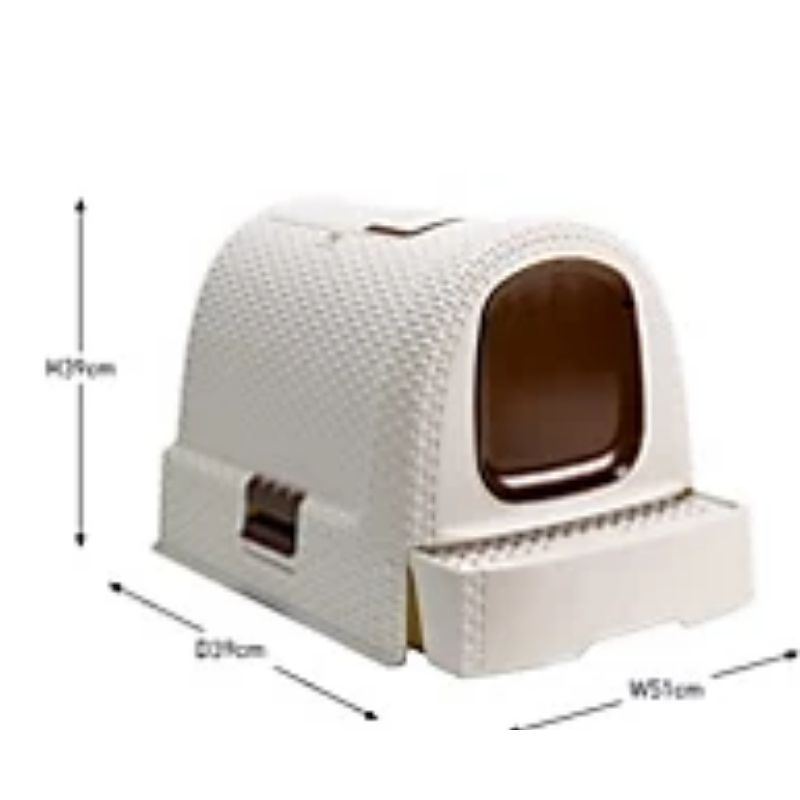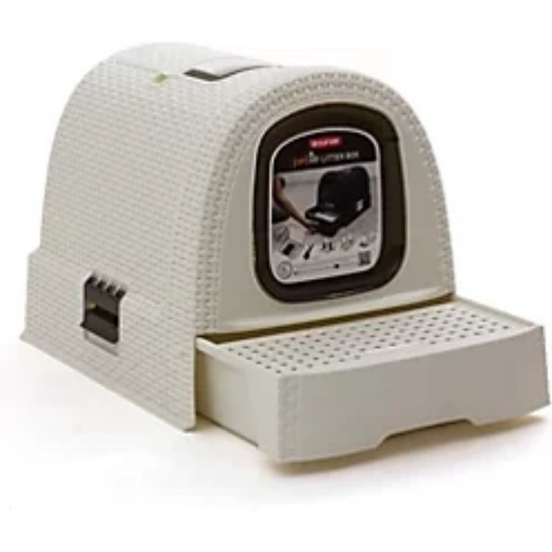 Opremljena je izvlačivom ladicom za pijesak koja olakšava čišćenje i rešetkastom podlogom koja sprječava rasipanje pijeska van kućice. Izrađena je od kvalitetne plastike otporne na vlagu, jednostavna je za održavanje i odlikuje se modernim ratan izgledom koji se uklapa u svaki enterijer.