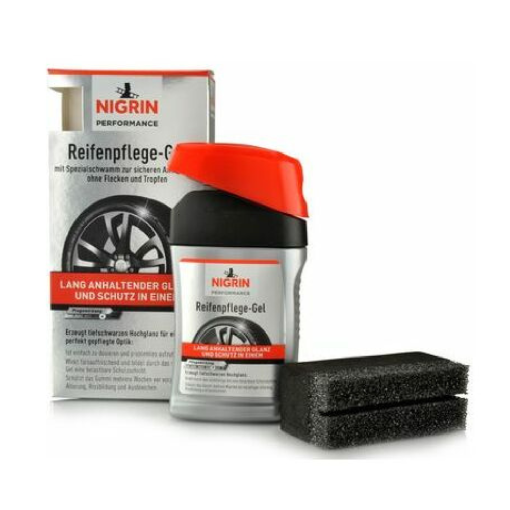 NIGRIN Performance gel za negu guma dugoročno pomaže u očuvanju vrednosti i daje vašem vozilu izgled kao nov. Stvara duboki crni sjaj i istovremeno štiti gume od prevremenog starenja i pucanja. Gel za negu guma formira dugotrajan, UV-otporan, prljavštinu i vodu odbijajući zaštitni sloj, čime smanjuje potrebu za čestim održavanjem.